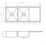 Arlo 1200x500x220 Brushed Brass Gold Double Bowl with Drainer Stainless Steel Sink